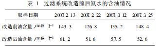 (2)蒸氨廢水是經過過濾器和蒸氨塔處理后的廢水,水中的含油量相比氨水的少。過濾器后氨水含油在50~60mg/l之間,而蒸氨廢水含油正常在30mg/l。